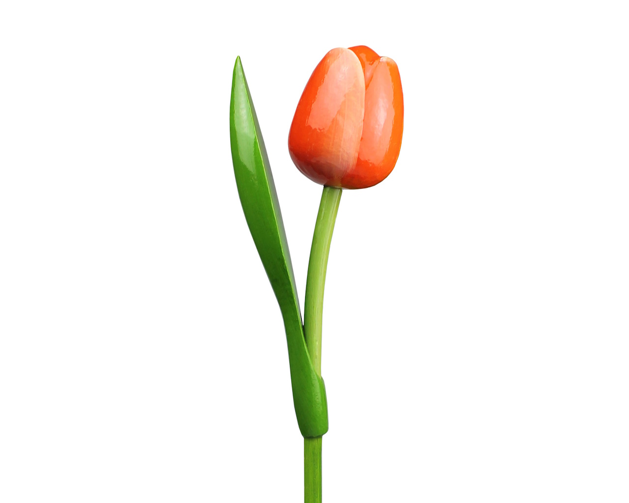 1 Holztulpe handbemalt, 34 cm hoch - Orange/Weiß